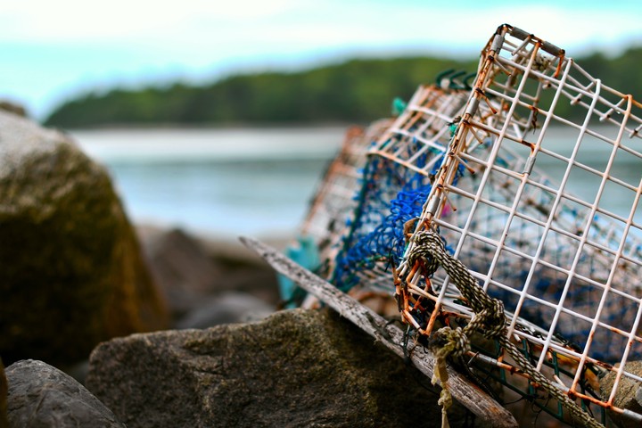 Lobster trap by the coast. Photo by Sean Quillen on Unsplash